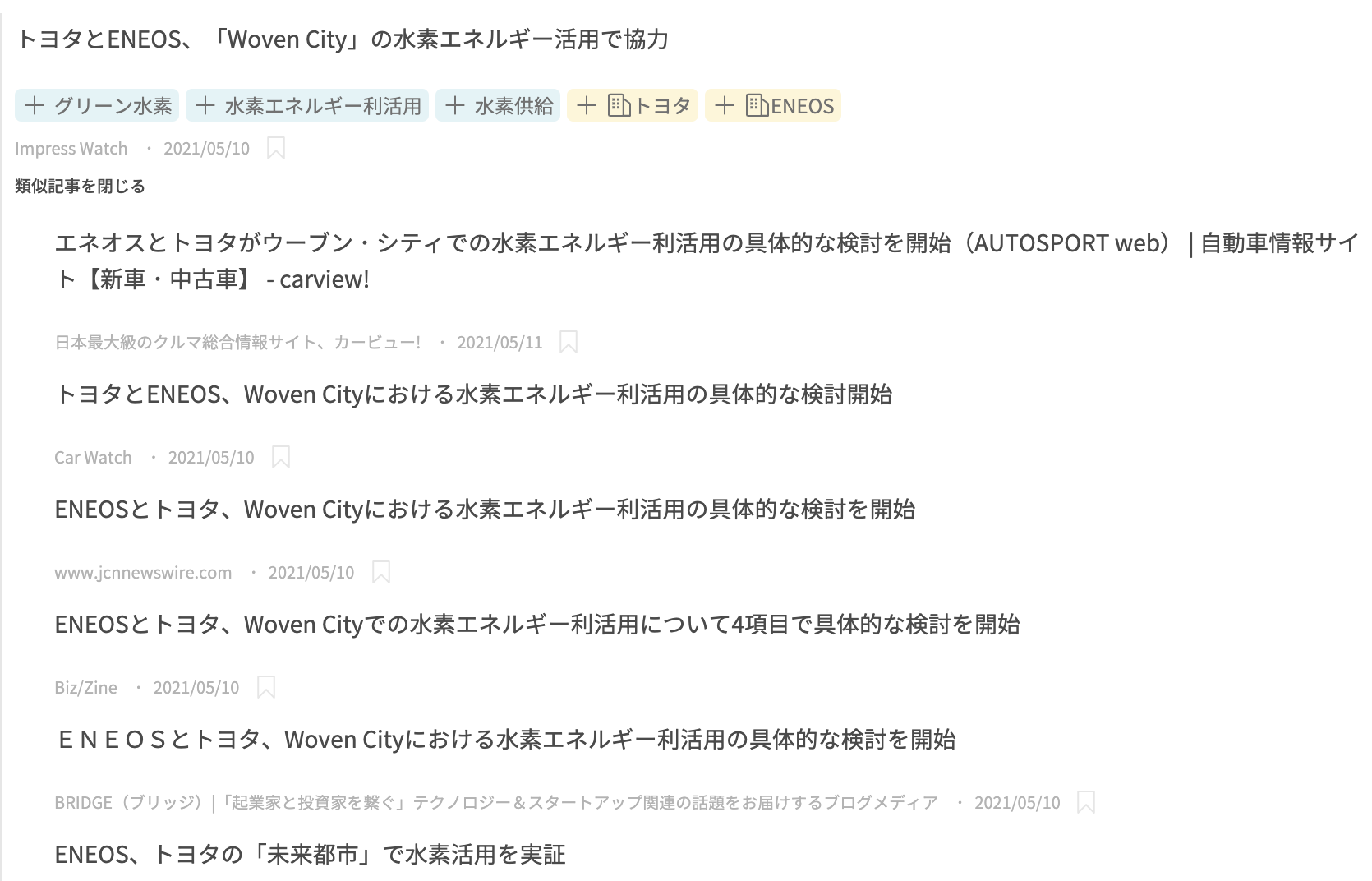 Please refer here for a related post in Japanese. In Stockmark, we collect tens of thousands of news articles from thousands of different media sources every day. Articles with similar content may be crawled from different news media. It is vital to detect and group similar articles in order to provide better user experience by improving our news analytics services, such as Anews recommendations, Astrategy business activity comparisons, etc. It is relatively easier to collect articles with the exact same content, but we also need to consider articles telling the same story with slightly different content. Vast majority of the similar articles are in the form of the same news stories written by different authors, rather than duplicating the same text. We utilize search engine to find text similarities and graph algorithms for grouping similar articles. Let us move on to the details. We first build an article similarity graph before grouping articles, where each node represents an article and there is an edge between two nodes if they are decided to be similar. Depending on the metric used to define similarity, the graph can be directed or undirected. In our case, it will be a directed graph. Article similarities can be retrieved using vector distance calculations if articles are embedded to fixed dimensional vectors, using approaches similar to doc2vec or S-BERT. In this project, we take a different approach and utilize the classical vector-space model through text-search engine implementation for similar document retrieval. We find this approach is more accurate and flexible than the document embedding approach. In Stockmark, news articles are indexed in Elasticsearch. Elasticsearch is a full-text search engine built over open-source Apache Lucene. You can see details of Lucene’s similarity scoring here. For each indexed article, More Like This (MLT) query is executed to retrieve their similar articles. A threshold is set for similarity decisions. Lucene’s scores vary depending on the length of the articles, so instead of setting the threshold over the absolute scores, we scale scores between 0 and 1. The first match of the MLT query is the same article or an article with exact same content, so its score is set to 1 and the rest is scaled accordingly. We use title and body fields of the article documents for similarity computations. We do some filtering in order to decrease the amount of the noise, such as ignoring news from the same media and ignoring news released more than 5 days apart - it is rare that an article of some news is reproduced after 5 days. Once similar articles are extracted, we can build the similarity graph. If article B is in the similarity list of article A, then we draw an edge from A to B. Note that MLT scoring is not symmetric; so B being similar to A does not mean A is similar to B. In the end, the resulting graph will be directed. Next, we need to find components on the similarity graph to retrieve similar articles. We utilize two different algorithms in this step. First, we find strongly connected components, then apply a community detection algorithm and take their intersecting components as final components. A directed graph is called strongly connected if there is at least one path between each pair of vertices. Strongly connected components of a graph are maximal strongly connected subgraphs of that graph. For our sample dataset, you can see strongly connected components of the similarity graph colored in the Figure 1 below. There are a few very large components and many small components. The largest component accounts for more than 4% of the articles, mainly because it contains articles for pre-formatted market reports. In Figure 2, we have a strongly connected component and 3 communities intersecting with that component. Graph community detection algorithms group densely connected vertices in a graph, which for our case help us remove noisy edges that make strongly connected components grow larger than they need to be. We used the SCD algorithm for community detection. SCD is a greedy algorithm where it clusters highly connected nodes first, then makes refinements on initial clusters. For details, you can refer to the paper and an implementation. It is theoretically possible to ignore strongly connected component detection and apply only community detection. Although community detection is very powerful, we observed that using only the community detection algorithm introduces false matching of articles, mainly because the SCD algorithm treats the directed graph as undirected. Using both strongly connected component and community detection algorithms yields better results than using only one of them. It is computationally infeasible to rebuild the similarity graph for all articles after each crawling batch. Instead, we employ an incremental approach. We only update article nodes that are reachable from the newly added articles. We ignore articles added more than 5 days ago during edge updates. In this post, we explained how to utilize full-text search engine to detect near-duplicate news articles. In Figure 3, You can see a sample search screen from our tool Astrategy, which lists a news article and other articles that are detected as similar. In our database, we detected similar articles for 40% of the articles and the average size of similar article groups is 3. This was collaborative work between our R&D and engineering teams. As a member of R&D team, I mainly explained the algorithm part, however there was also work to set up and scale Elasticsearch servers and queries.