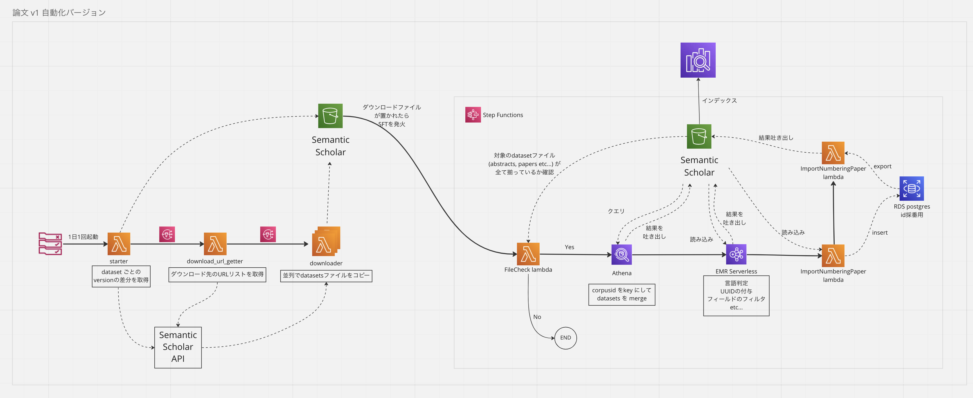 また、今回の実装では全体のインフラ構成も複雑であったため、事前に鳥瞰図を準備しておきました。2023/6 時点の設計・実装はやや異なりますが、当時準備していたものを参考までに掲載いたします。